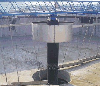 刮泥機(jī),是一種排泥設(shè)備。組成部分:刮泥機(jī)由桁車、刮泥耙、撇渣板、驅(qū)動(dòng)裝置和自控柜等到組成。分類:刮泥機(jī)主要有中心傳動(dòng)刮泥機(jī)、周邊傳動(dòng)刮泥機(jī)。中心傳動(dòng)刮泥機(jī)主要由工作橋、傳動(dòng)裝置、穩(wěn)流筒、傳動(dòng)軸、刮臂、刮泥板等組成。該機(jī)設(shè)有橫跨池子的固定平臺(tái),工作時(shí)其整機(jī)載荷都作用在工作橋中心;污水經(jīng)池中心穩(wěn)流筒均流到四周。隨著過(guò)流面積增大而流速降低,污水中的沉淀物沉淀于池底,刮泥機(jī)將沉淀的污泥刮集到中心集泥坑中,利用水壓將其從污泥管中排出。該機(jī)結(jié)構(gòu)簡(jiǎn)單,傳動(dòng)平穩(wěn),動(dòng)力消耗低,刮泥效果好,是一種理想的排泥設(shè)備;周邊傳動(dòng)刮泥機(jī)用于城市污水處理廠、自來(lái)水廠以及工業(yè)廢水處理中輻流式圓形沉淀池和濃縮池中,排除沉降在池底的污泥和撇除池面的浮渣。應(yīng)用領(lǐng)域:刮泥機(jī)主要應(yīng)用于鋼鐵、冶金、礦山、水處理等行業(yè)。